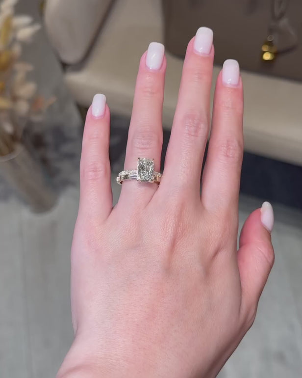 Load and play video in Gallery viewer, Radiant Cut Moissanite Bridal Ring Set – Engagement & Wedding Set for Women