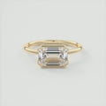 Emerald Cut Moissanite East West Engagement Ring | Half Bezel Solitaire Minimalist Bridal Ring